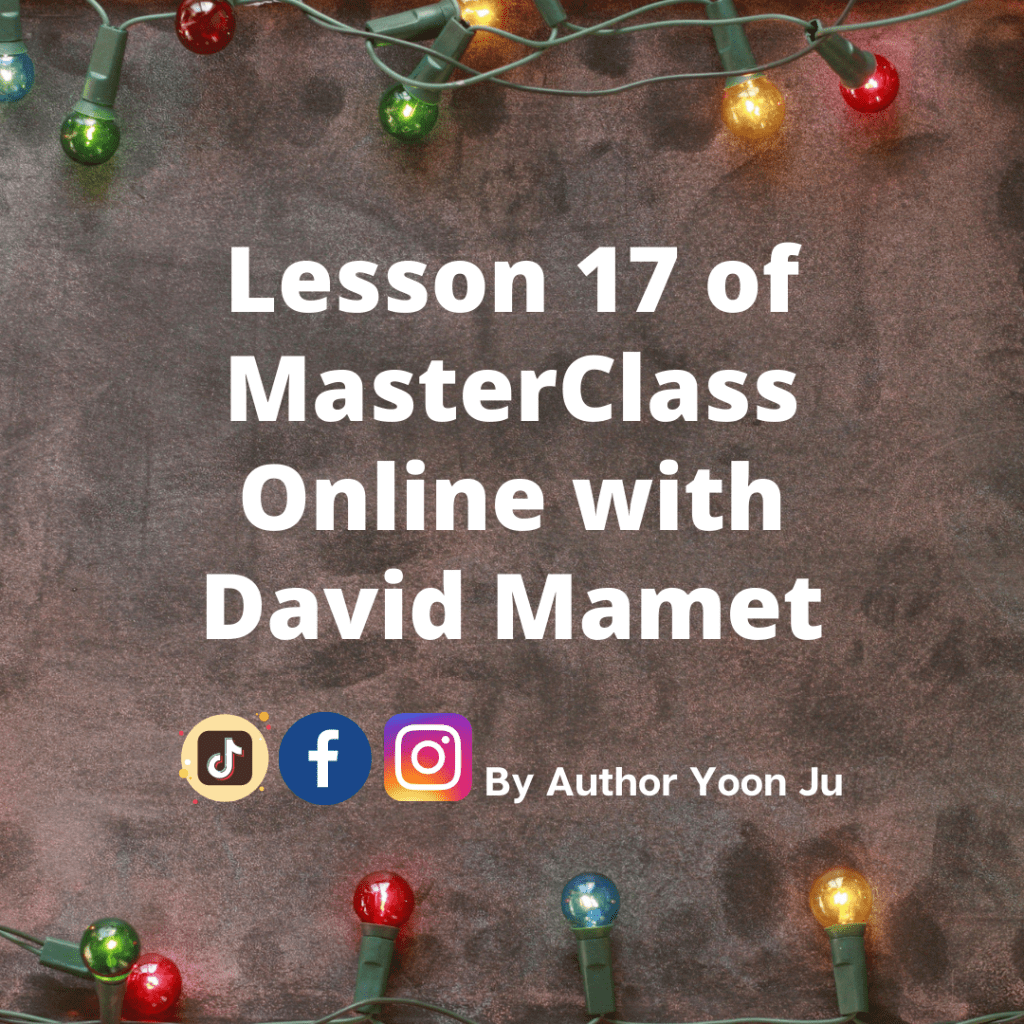 Arts and craft weekend is over and it’s time to get back into school before the Holidays at the end of the week. We’re going over Lesson 17 and talking about the writing process with David Mamet. In this lesson, he talks about his writing environment, dealing with writer’s block, and his inspiration on how to begin writing.